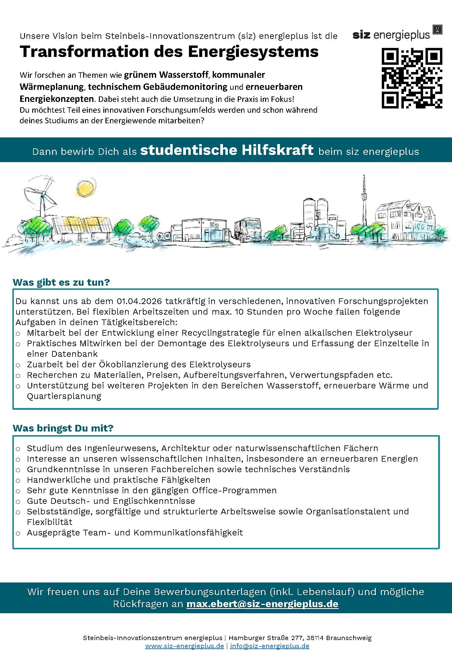 Then we look forward to receiving your application documents as a PDF document stating your earliest possible starting date to Dr.-Ing. Christian Kley | christian.kley@siz-energieplus.de